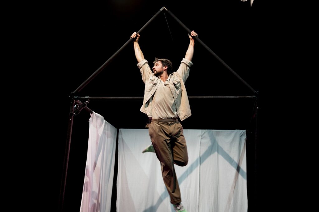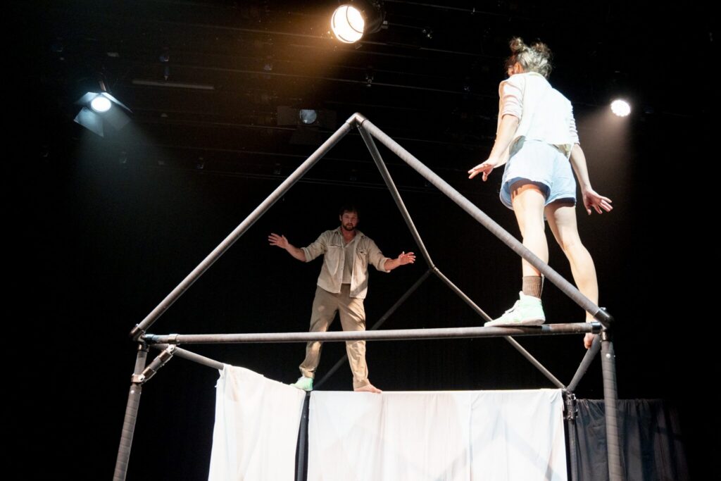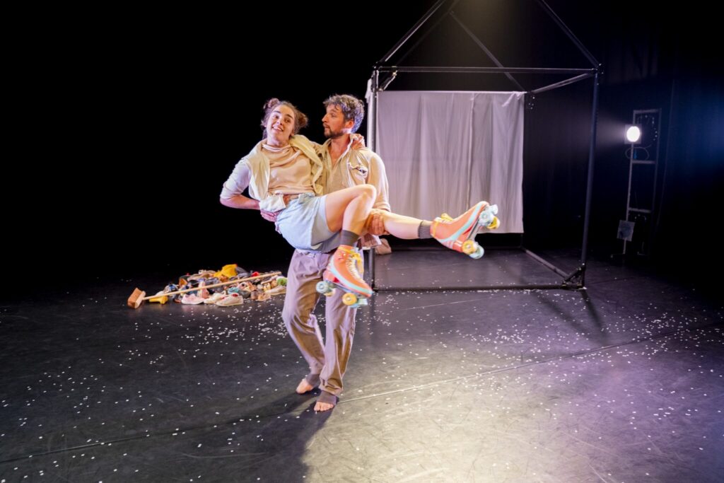 The performance unfolds like a real game of cat and mouse. The two acrobats attract and repel each other, each inventing clever ways to escape. When one seems to have the other firmly in hand, the other wriggles away with ease, slipping playfully through the smallest gaps.