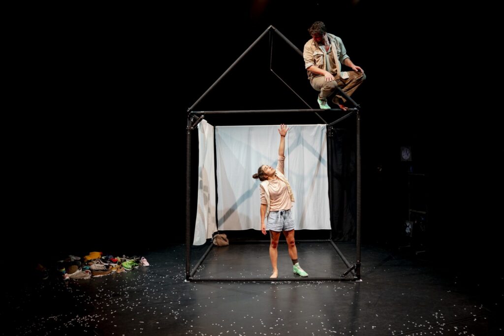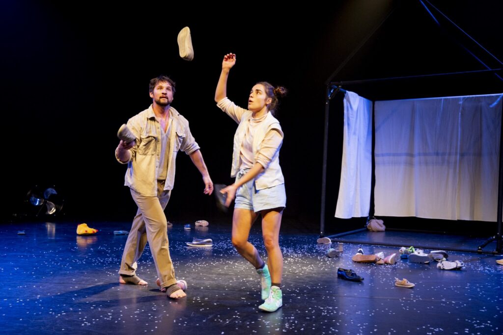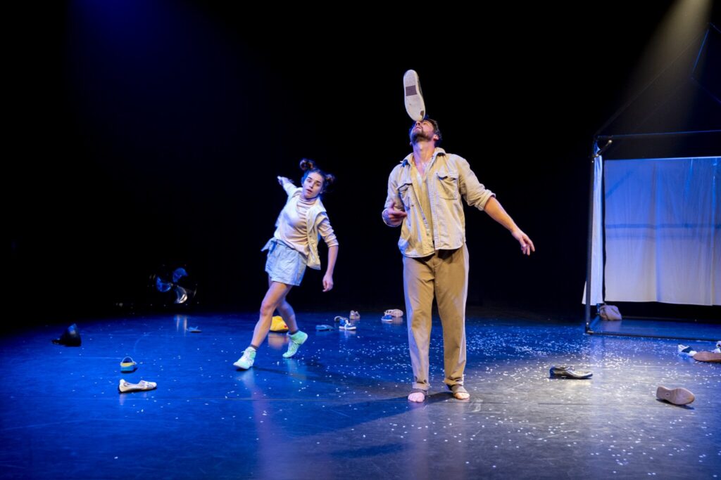 Through partner acrobatics, Chinese pole techniques, and a generous dose of humor, they climb over, under, and around each other until suddenly, out of nowhere, a mountain of shoes appears on stage. Then begins the juggling, balancing, and stumbling, with one clear goal: to claim the shoes.